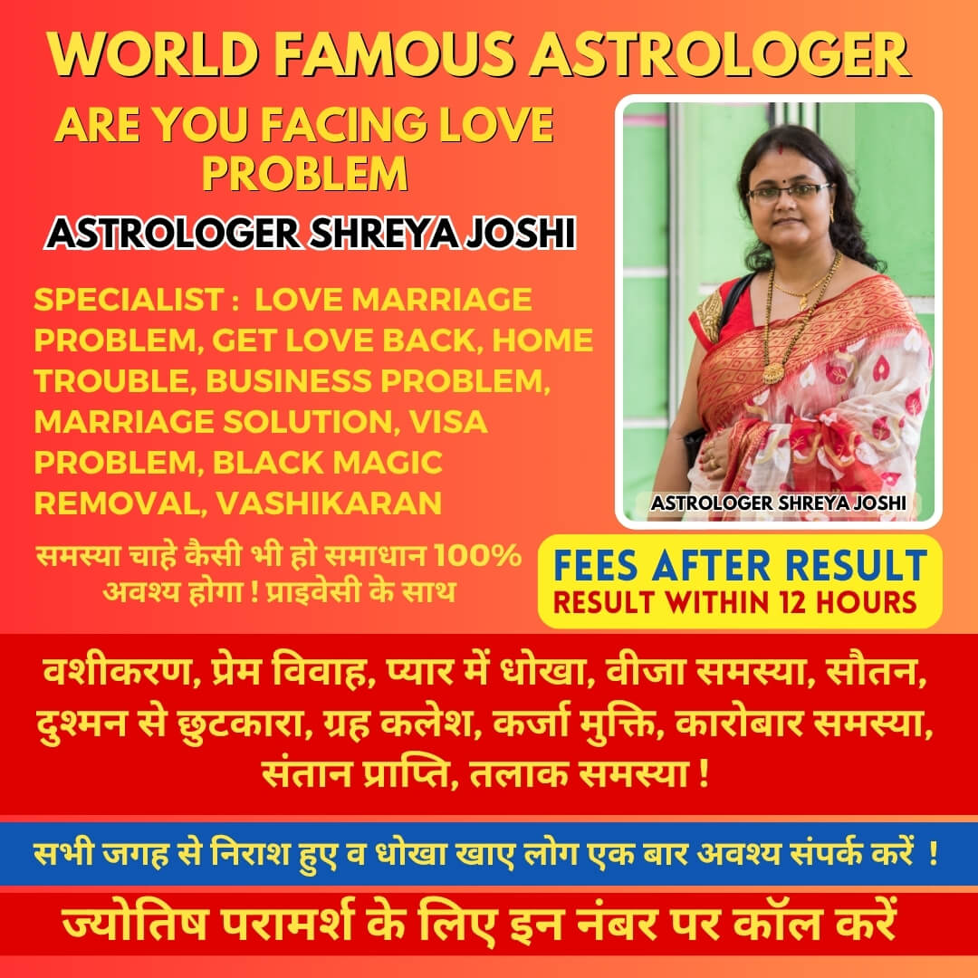 Resolve love problems with renowned Astrologer Shreya Joshi. Trusted guidance for lasting solutions.
